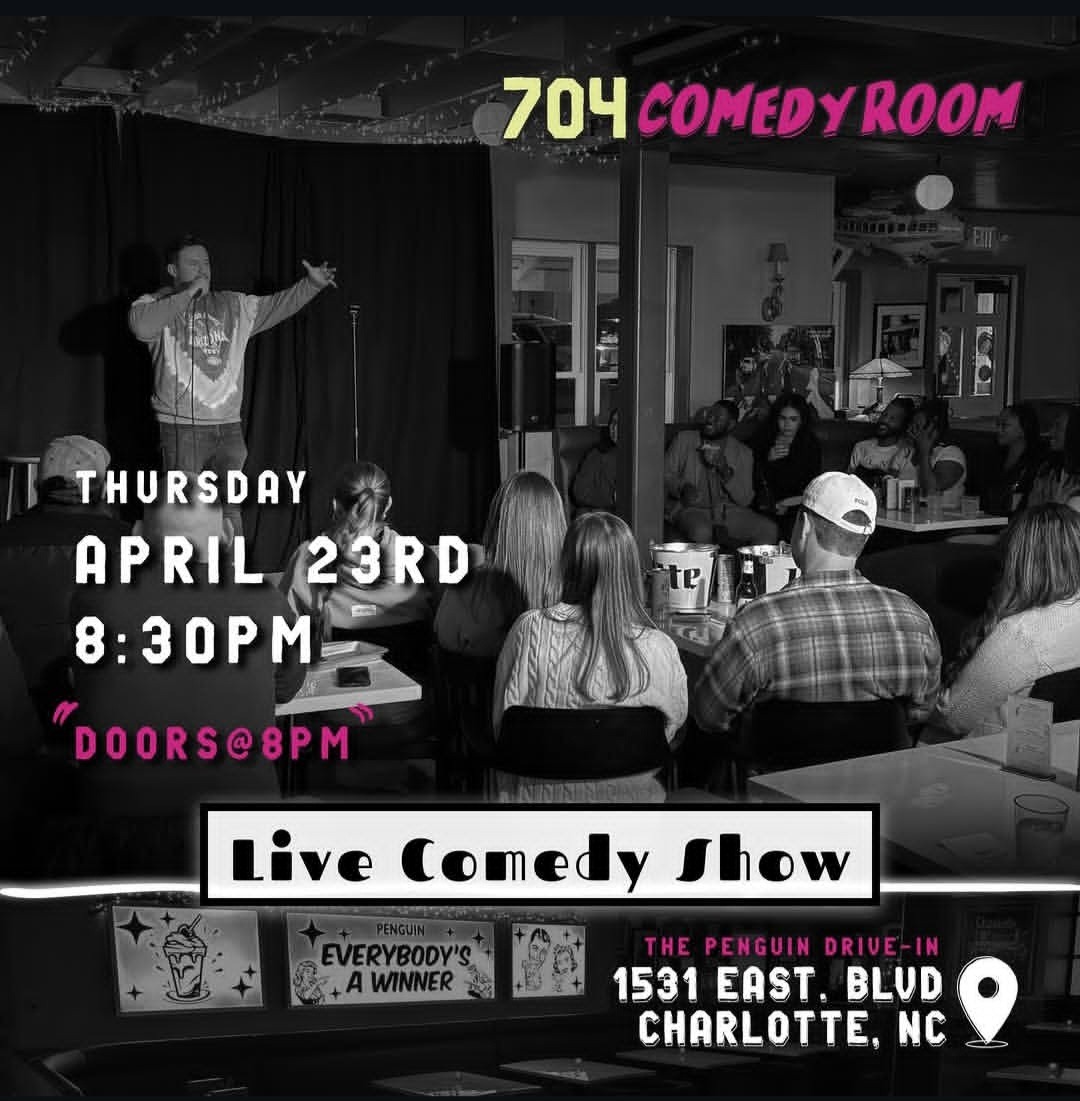 704 Comedy Room, a comedy production group, run by comedians, that provides authentic stand-up shows at partnered venues in the community of Charlotte. The group aims to give people an experience of comedy where they laugh and feel invited to participate in a cultural event in their city.